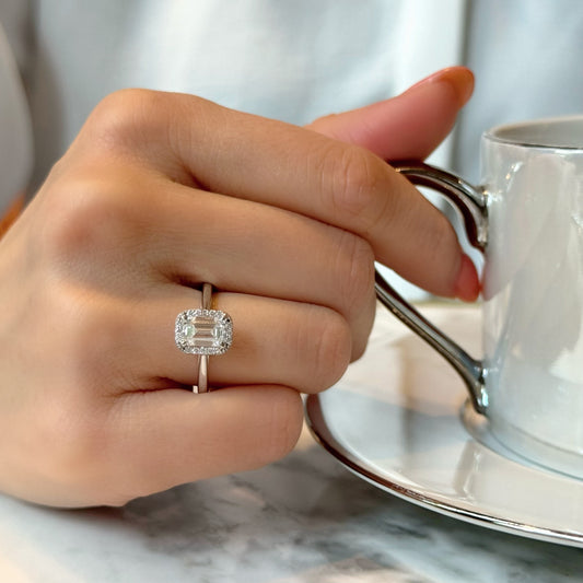 玛丽祖母绿切割秘密光环戒指 |实验室培育钻石/钻石订婚戒指