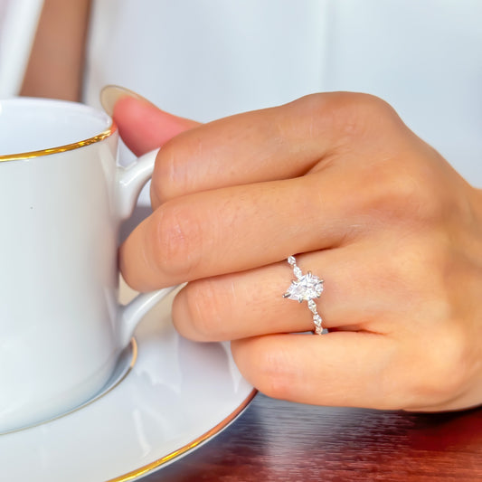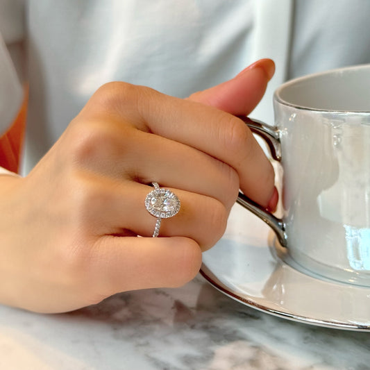 克里斯汀椭圆形光环戒指 | 实验室种植钻石/钻石订婚戒指