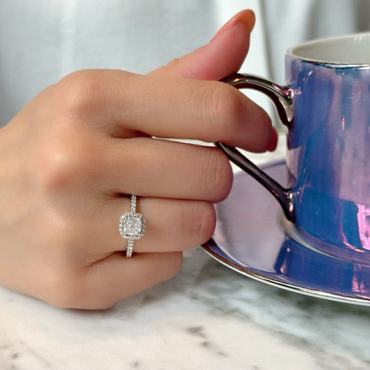 玛雅公主方形切割密镶戒指 |实验室培育钻石/钻石订婚戒指