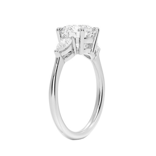 両サイドに存在感あるペアシェイプダイヤをあしらった、ダイヤモンドの華やかさを際立たせた婚約指輪